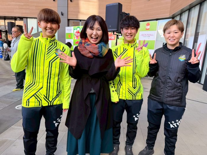 ヴィアマテラス宮崎の小牧明日香選手(宮崎県出身)、村上和愛選手、馬場ひなの選手によるサッカー体験⚽️